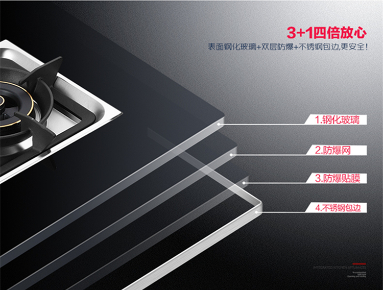 现在来说燃气灶钢化玻璃的面板抗冷热、抗冲击力方面一般都是没有问题,技术已经很成熟了。就算偶有开裂的情况,几率也是非常非常小的,而且裂开的碎片会连在一起,不易伤...