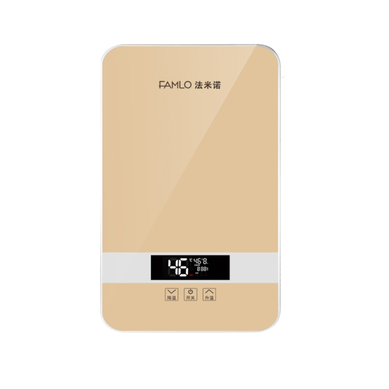 特点六:法米诺速热式电热水器不受安装地点的限制,浴室、阳台,厨房均可;安装要求低,2.5平方电线即可。更有雅致黑,土豪金两种颜色供你选择。
